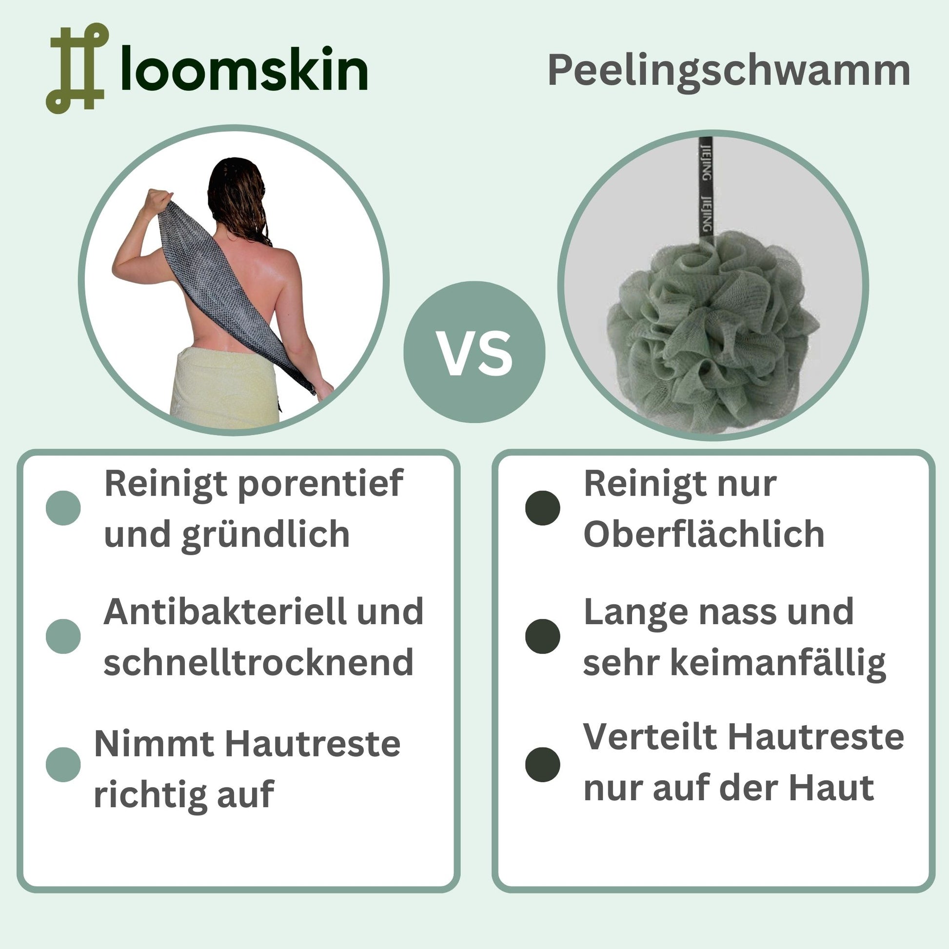 Wir wollen nicht nur ein effektives Peelingtuch anbieten – es ist die treibende Kraft hinter allem, was wir tun. Es ist das, was uns motiviert, jeden Tag daran zu arbeiten, Hautpflege einfacher, hygienischer und nachhaltiger zu machen. Loomskin steht für ein Produkt, das sich gut anfühlt, deine Haut sichtbar verbessert und gleichzeitig die Umwelt schont – und wir sind stolz, Teil dieser Veränderung zu sein.
